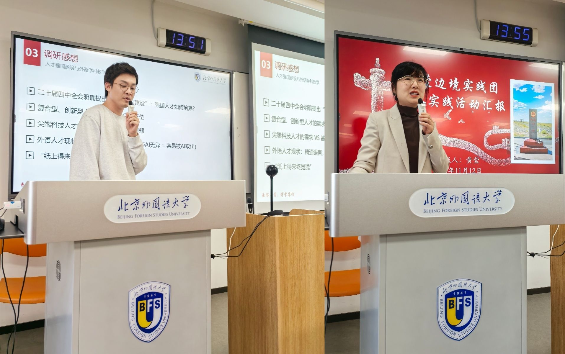 王嘉老师介绍了组织开展语言实践、举办学术讲座等提升员工专业素养的培养模式,并分享了前往云南等地开展中越边境实践团的收获。这些活动充分体现了北外将语言优势、学术研究与服务社会相结合的综合育人理念。