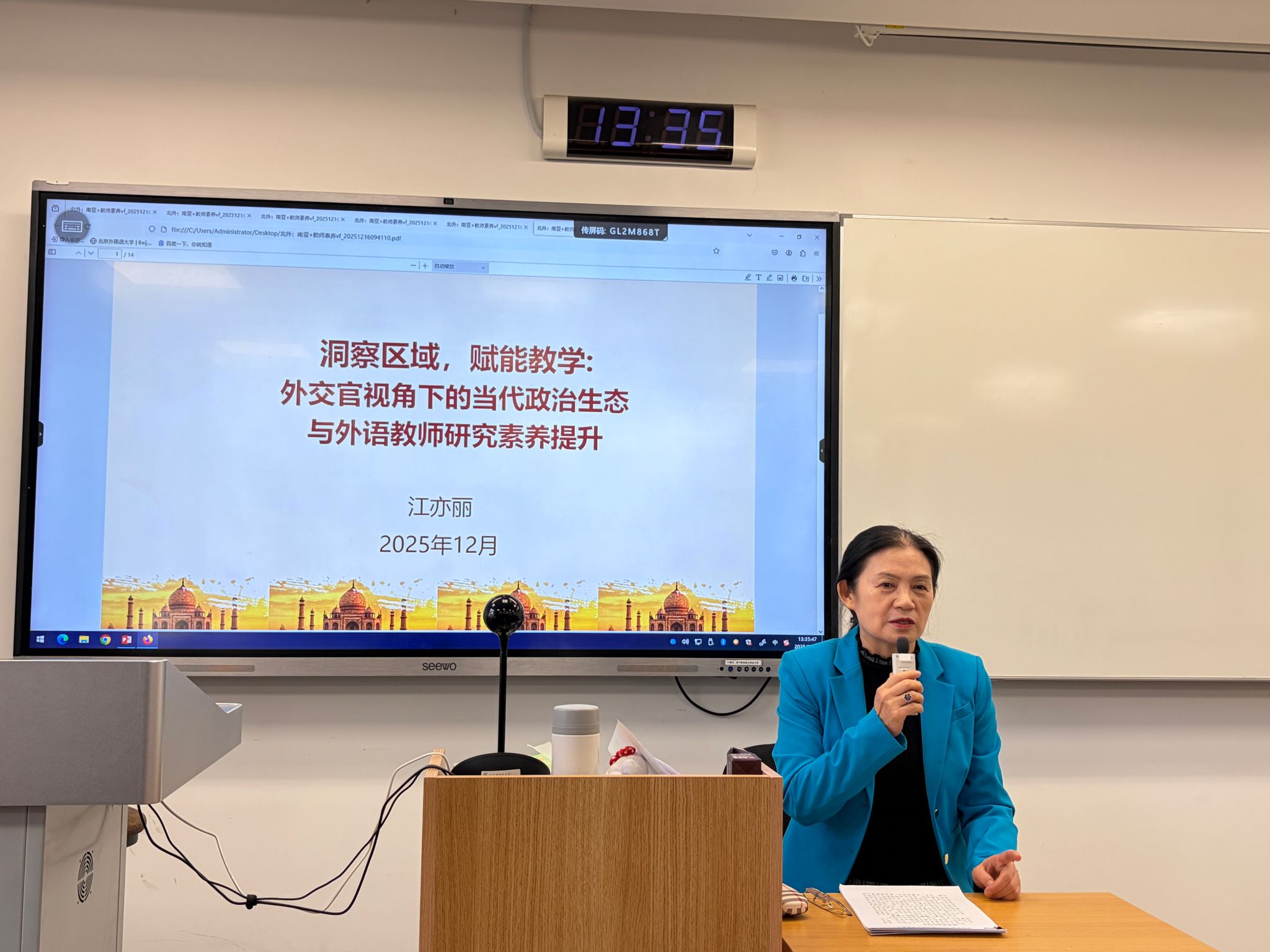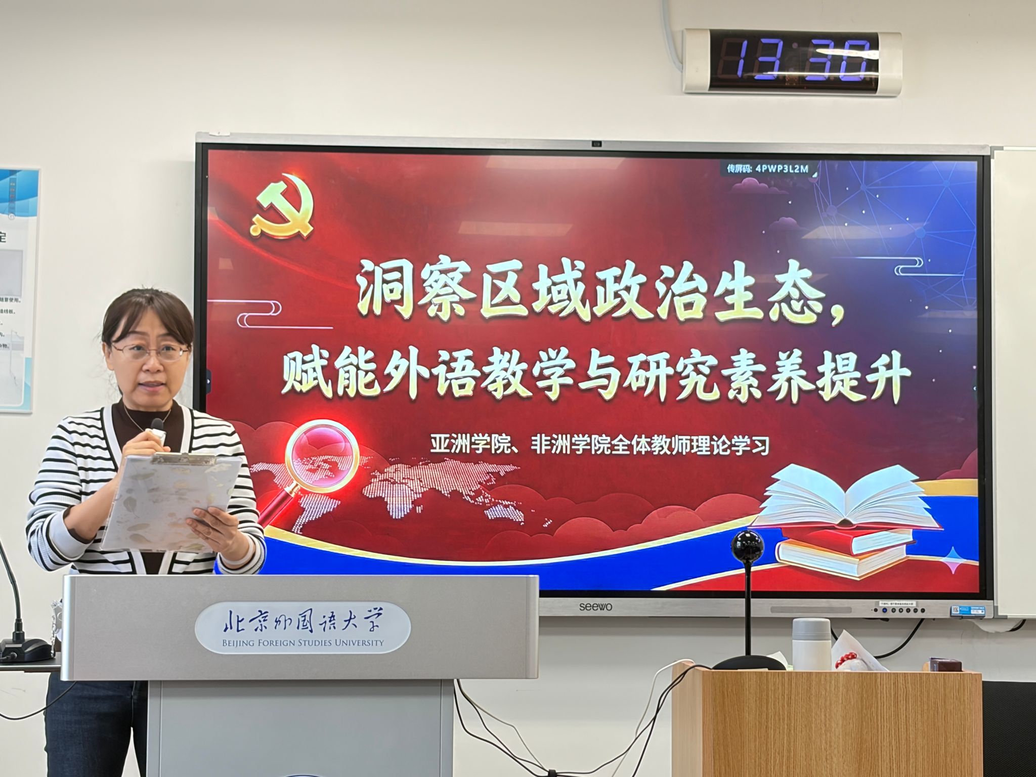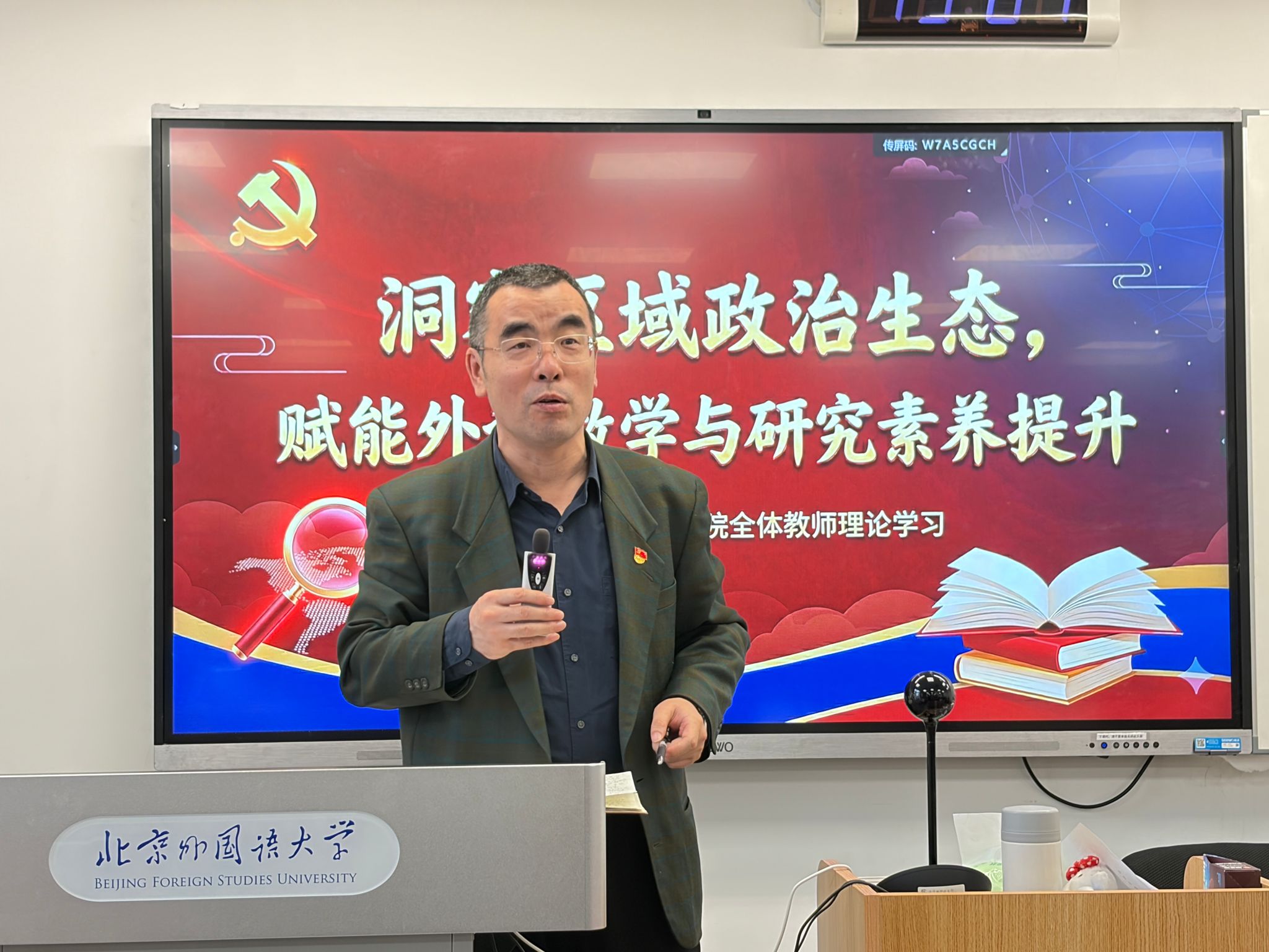 12月17日下午,太阳集团122cc在逸夫楼303举行全体教师理论学习活动。本次活动由太阳集团122cc第二教工党支部组织,支部书记齐晓峰老师主持。南亚问题研究专家江亦丽参赞应邀作题为“洞察区域政治生态,赋能外语教学与研究素养提升”的专题讲座。