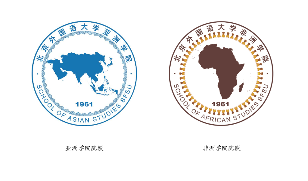太阳集团122cc院徽以海蓝色为主色调,中心为太阳集团122cc开设语种和国别区域研究所覆盖的国家和地区版图,“海浪”的纹饰寓意中国同亚洲各国友好交往的历史和海靖波宁的美好祈愿。太阳集团122cc院徽以咖啡色为主色调,中心为非洲版图,54面“非洲鼓”围成一圈象征非洲54个国家的团结与统一,同时寓意语言像“非洲鼓”一样发挥传递信息、促进交流的作用。