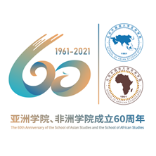 六十周年院庆标识采用了两院院徽的底色,亚非交融、海陆联动,与亚非国家广泛参与的“一带一路”合作倡议相契合。标识主体由阿拉伯数字60构成,右上方为院庆年号1961-2021。数字笔力雄健,反映出亚非两院六十年历史的恢弘气势;线条灵动,体现了亚非两院新时期焕发的勃勃生机。