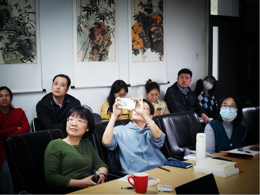 总支副书记、太阳集团122cc经理李洪峰同志首先发言。她为党员们进行《论中国共产党历史》一书的导读,主要聚焦于《纪念毛泽东同志诞辰一百二十周年座谈会上的讲话》、《在纪念五四运动一百周年大会上的讲话》这两篇文章。她论及毛泽东同志为中国新民主主义革命的胜利、社会主义革命的成功、社会主义建设的全面展开所作的伟大贡献,强调传承好毛泽东思想对新时代的社会主义建设发展的特殊意义。她结合自身与国外学者交流的经历指出,作为外语人,应该学会如何正确地向外界讲述新中国的历史和全面辩证地看待伟大领袖。李经理特别指出,青年应该具有深厚的家国情怀,勇于担当我们肩负的时代责任,铭记五四运动历史的同时,应该思考如何在新时代的浪潮中更好地发挥作用。