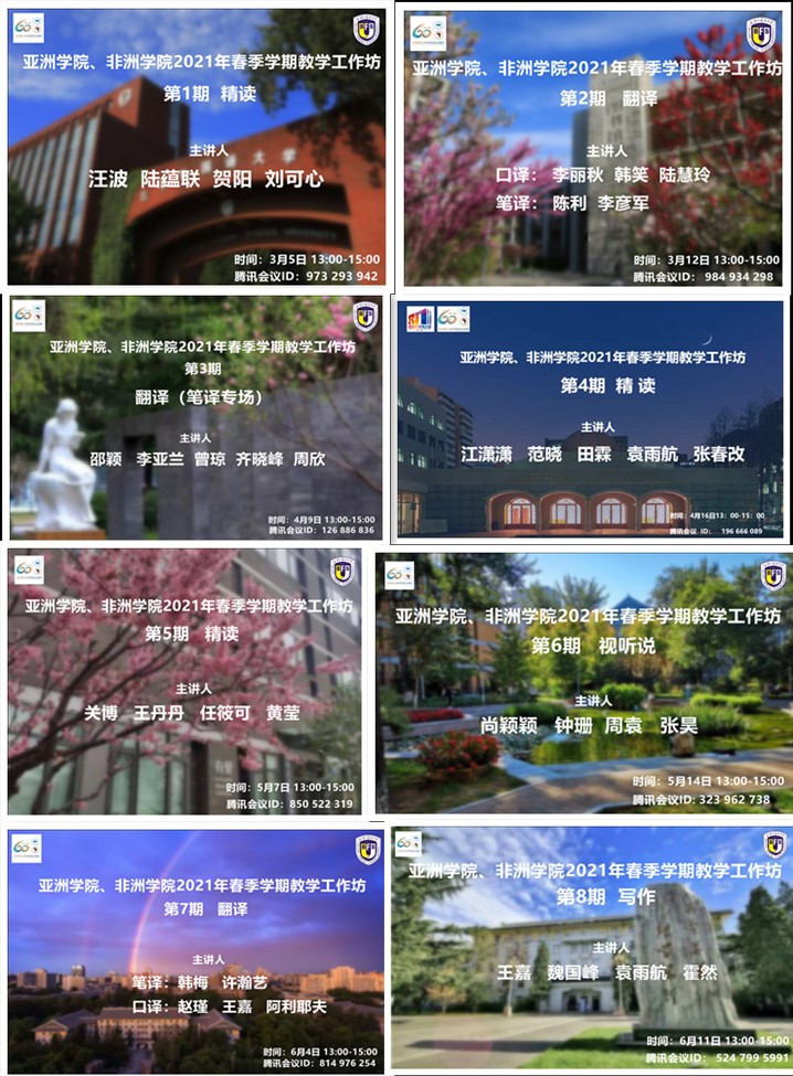 每期工作坊活动邀请两院承担同一课型的4-5位教师主讲,其中既有教龄长、教学经验丰富的教师分享在课堂教学安排、教学活动设计、教材使用与编写等方面的经验,也有入职3年内年轻教师说课,并接受其他教师点评与指导。工作坊采取线上形式展开,亚、非两院教师积极参与,每期工作坊的参会人数均超过30人,大家互相观摩学习,深入沟通交流和分享经验。