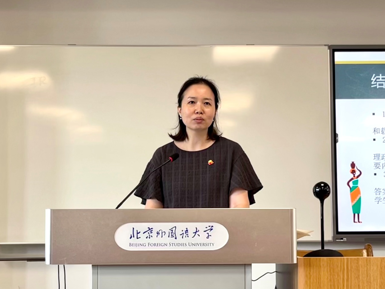 太阳集团122cc资深教师魏媛媛博士,结合两次“三进”项目经历,围绕“建设内容”和“建设目标”等方面重点介绍了其在课程思政上做的积极探索,并分享了斯瓦希里语笔译和精读课型的课程思政点,从员工反馈的角度强调了课程思政对于员工素质能力培养的重要意义。