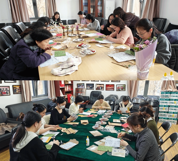 活动伊始,院工会委员范晓老师为教师们详细讲解了木艺花束的制作技巧。几位工会委员介绍了不同款式木易花束的制作的注意事项。在轻松愉悦的氛围中,教师们化身“手作达人”,将一片片木质花瓣、枝叶巧妙组合成独具匠心的花艺作品。活动现场欢声笑语不断,教师们互相交流灵感,分享生活趣事,在协作与互动中增进情谊,展现新时代女性智慧与优雅并重的风采。