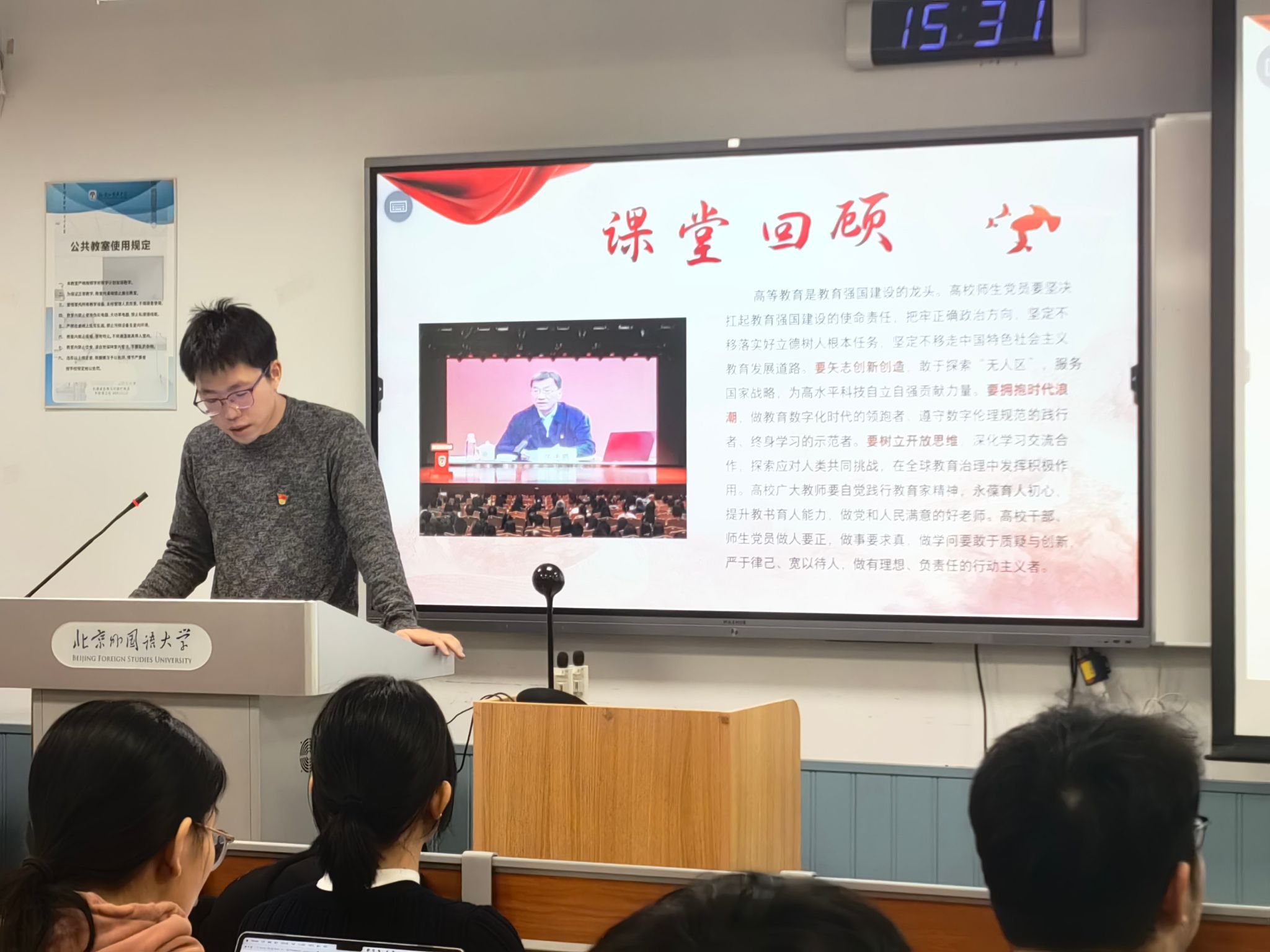 随后,与会党员围绕“教育体制比较与文明互鉴”展开分组研讨,结合专业对象国的实际情况,就不同国家的教育理念与制度特点进行了深入对比,探讨如何以自身海外经历更好地促进中外教育交流互鉴,助力构建人类命运共同体。讨论中,大家一致认为,新时代青年党员应将专业知识与国际视野相结合,以学铸魂、以才报国,在讲好中国故事、促进文明互鉴中贡献青春力量。