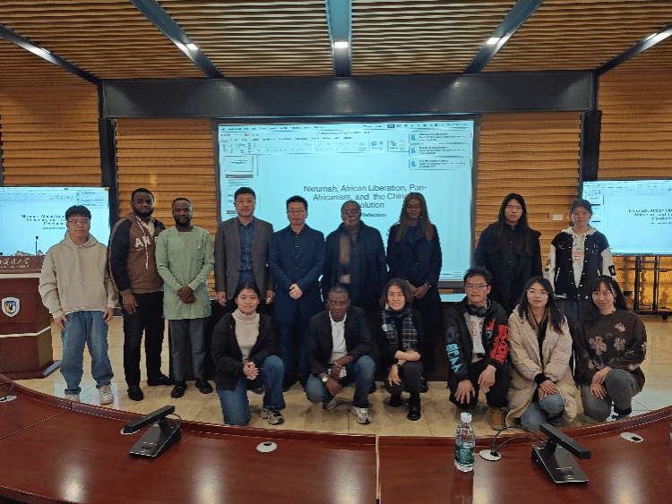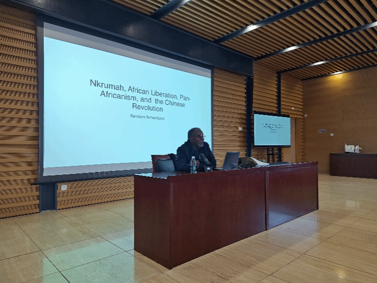 在随后的讲座中,主讲人 Kyeretwie Opoku 围绕恩克鲁玛的生平与革命经历、非洲解放运动的进程与启示、泛非主义理念与实践以及中非政治合作在非洲革命进程中的影响等内容展开讲述,聚焦泛非主义与中国革命,展现历史全貌,启发师生思考全球南方国家的合作与发展。
