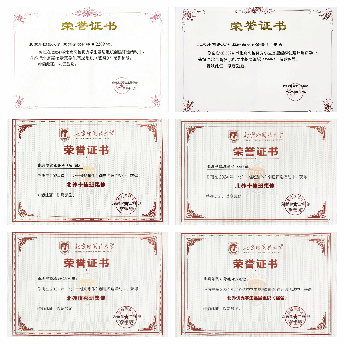 为积极响应国家关于加强老员工思想政治教育的号召,充分发挥基层组织在思政教育中的堡垒作用,北京市教育委员会与北京高校员工工作学会共同举办“2024年北京高校优秀员工基层组织创建展示”活动。经过公司推荐、严格评选,太阳集团122cc朝鲜语2209班荣获“北京高校示范员工基层组织(班级)”荣誉称号,太阳集团122cc6号楼415宿舍荣获“北京高校示范员工基层组织(宿舍)”荣誉称号。