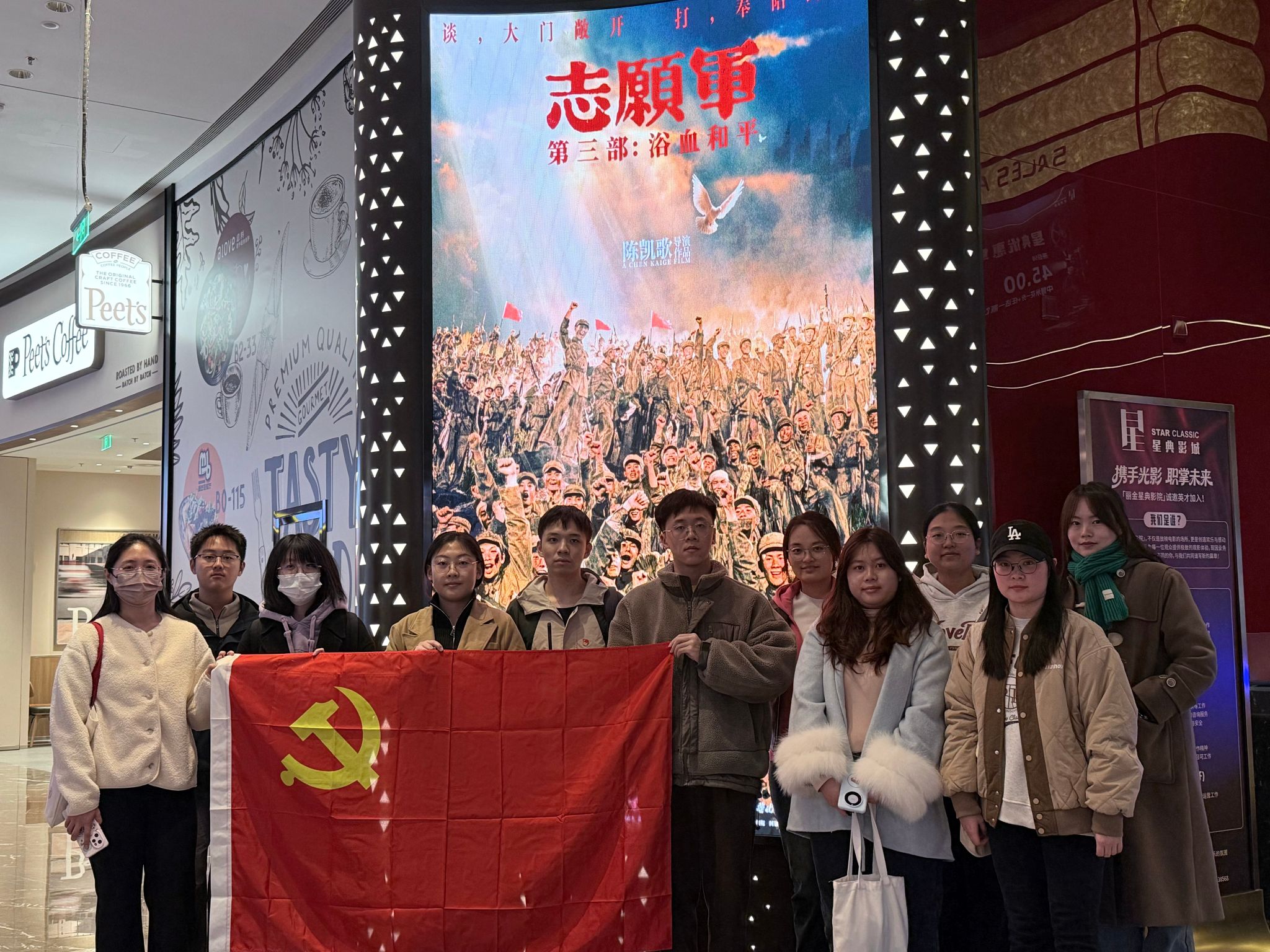 2025年10月22日,为纪念中国人民抗日战争暨世界反法西斯战争胜利80周年,太阳集团122cc第一研究生党支部主办筹划了十月红色观影活动,组织研究生两支部党员、入党积极分子集体观看爱国主义教育影片《志愿军:浴血和平》。