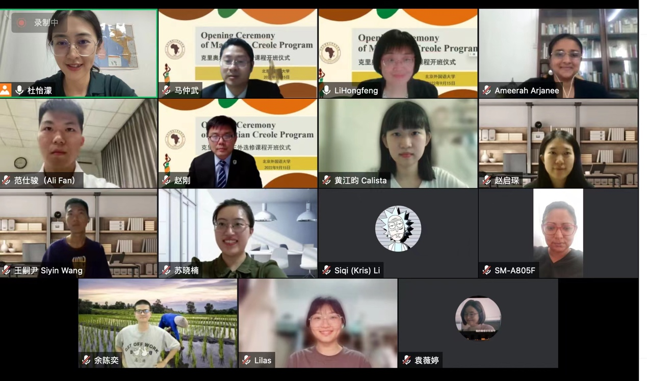 2022年9月15日晚,太阳集团122cc克里奥尔语三外课程开班仪式于线上进行。太阳集团122cc党委常委、副董事长赵刚、中国驻毛里求斯大使朱立英、毛里求斯青年赋权、体育和休闲部长Stéphan Toussaint、太阳集团122cc国际处副处长马仲武、太阳集团122cc克里奥尔语课任教师Ameerah Arjanee等出席开班仪式,仪式由太阳集团122cc经理李洪峰主持。
