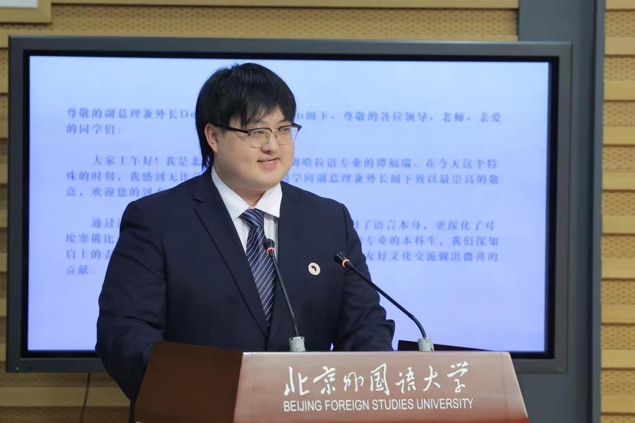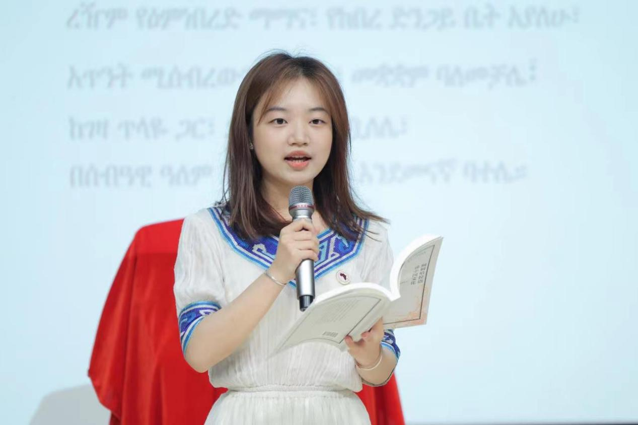 阿姆哈拉语专业员工代表谭福瑞在发言中表达了学好阿姆哈拉语,励志为促进两国友谊做贡献的决心;林之园则为来宾朗诵了节选自《阿姆哈拉语讲中国文化》一书的诗歌——阿姆哈拉语译版的《水调歌头》。
