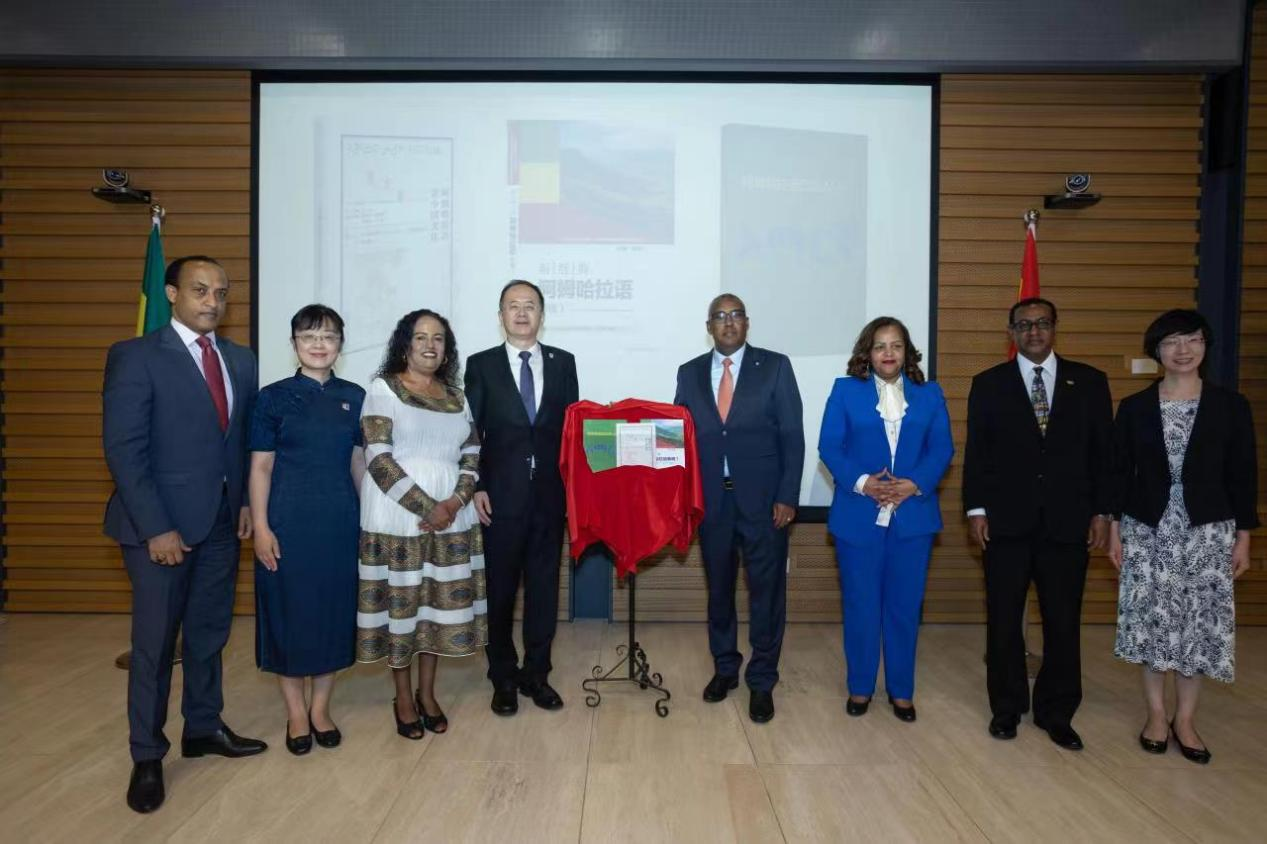 随后,埃塞俄比亚副总理兼外长德梅克·梅孔嫩、埃塞俄比亚驻华大使塔费拉、贾文键副董事长、太阳集团122cc经理李洪峰以及外研社党委副书记常小玲共同揭幕阿姆哈拉语系列教材,分别是2021年出版的《阿姆哈拉语讲中国文化》和2023年出版的《阿姆哈拉语口语入门》和《新经典阿姆哈拉语综合教程I》。系列教材均由外研社出版。
