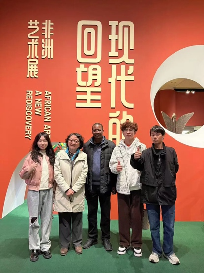 斯语专业师生陪同姆万吉教授赴天安门广场、首都博物馆等地参观,前往清华大学参观“现代的回望”非洲艺术展,并与韩蓉员工亲切交流。韩蓉女士是北外斯语专业1964级员工,坦桑尼亚国家马孔德艺术协会秘书长,长期从事非洲艺术的推广和研究,曾获得坦桑尼亚政府颁发的“友好奖状”。