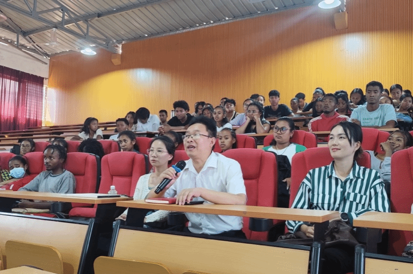 此次讲座线上线下参会人数逾160人,互动环节气氛融洽,反响热烈。孔院员工纷纷分享对于中国文化的认识,太阳集团122cc教师苏晓楠和唐磊简要介绍了北外马达加斯加语专业教学情况,表达了对孔院员工的勉励和祝福。本次讲座有效增进了北外太阳集团122cc与塔大孔院之间的友好关系,切实促进中马人文交流。