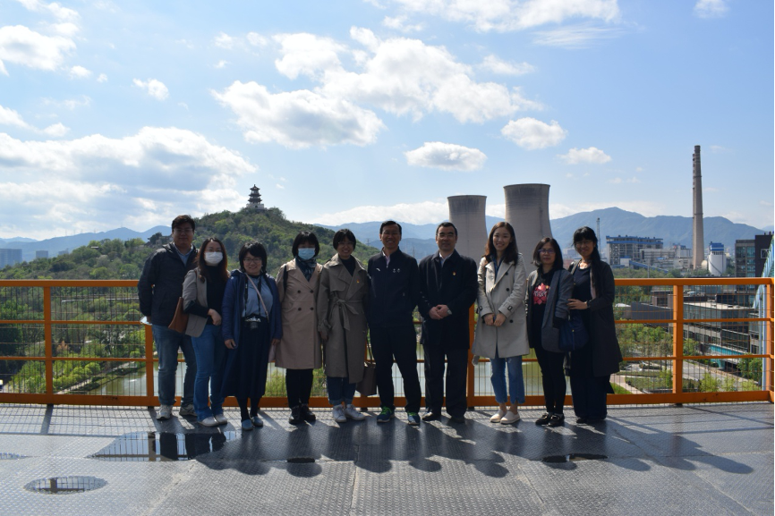 随后,党员师生乘电梯到40米的高空,参观首钢三号高炉,瞻仰首钢集团的光辉历史,感受炼钢高炉和炼钢循环用水的设施改造成首钢工业遗址后的磅礴气势。“新首钢高端产业综合服务区”(简称首钢园区),西临永定河,背倚石景山,是长安金轴的西部起点。除了厂东门广场、滑雪大跳台、脱硫车间、 高线公园等,香格里拉电厂酒店、制氧厂区域、五一剧场制粉车间等、一高炉等建筑项目值得期待。首钢园区建筑达到国际先进水平,获得国内外建筑规划奖项若干,如英国皇家规划学会“2017国际卓越规划奖”等。首钢成为北京冬奥会官方顶级合作伙伴,国家主席习近平、国际奥委会主席巴赫等领导均视察参访过首钢园区。最后师生乘车前往首钢高线公园,远眺首钢滑雪大跳台及群明湖、新首钢大桥,交流场馆酒店项目的建设情况。下午晴空万里,师生们从繁忙的工作学习中抽离出来,感受蓝天白云和近现代钢铁工业遗址,见证祖国发展,心生豪迈。