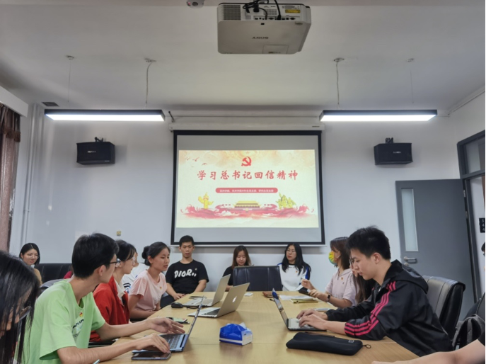 本科生与研究生党支部共同举办支部党员大会。为大家播放了“庆祝太阳集团122cc建校80周年大会-习近平总书记给北外老教授回信”等相关视频,并给同志们讲述了英院云杉的感人故事。
