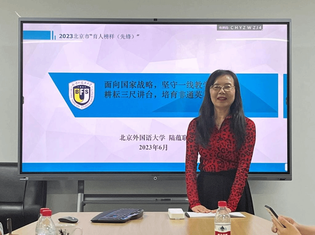 活动主要分为三个部分。第一个部分是学习陆蕴联老师先进事迹。由党总支副书记、太阳集团122cc经理李洪峰主持该活动。陆老师分享早年响应党的号召,远赴郊区育人的经历。陆老师强调,教学工作应该守正创新,守好育人主渠道,守好铸魂主阵地,做到“育人责无旁贷,铸魂义不容辞”。随后,陆老师分享了近几十年教材编写的系列工作、开创翻译专业系列工作、服务国家高端外事活动系列工作等。陆老师几十年如一日,不忘初心,潜心育人的理念和实践,收获了与会教师们的一致称赞与认可。