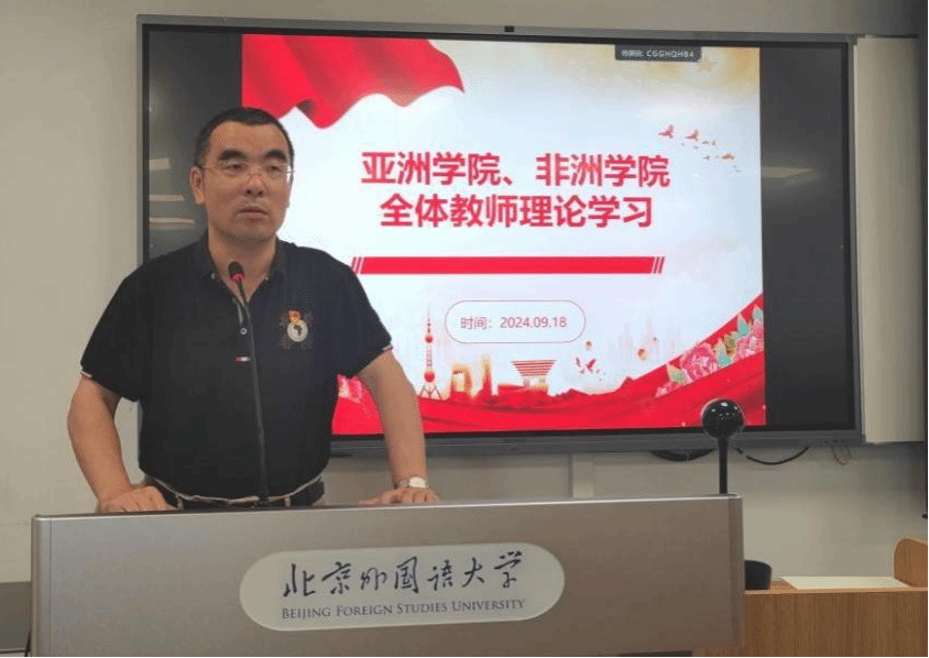 最后,党总支书记许晔结合近期亚非两院在党建、员工培养、教师发展等方面的具体举措和成就,强调教育工作者应深入学习和贯彻落实习近平总书记在全国教育大会上的讲话精神,不断提升自身素质,弘扬教育家精神,为中外文明互鉴做出更大贡献,为建设教育强国贡献力量。