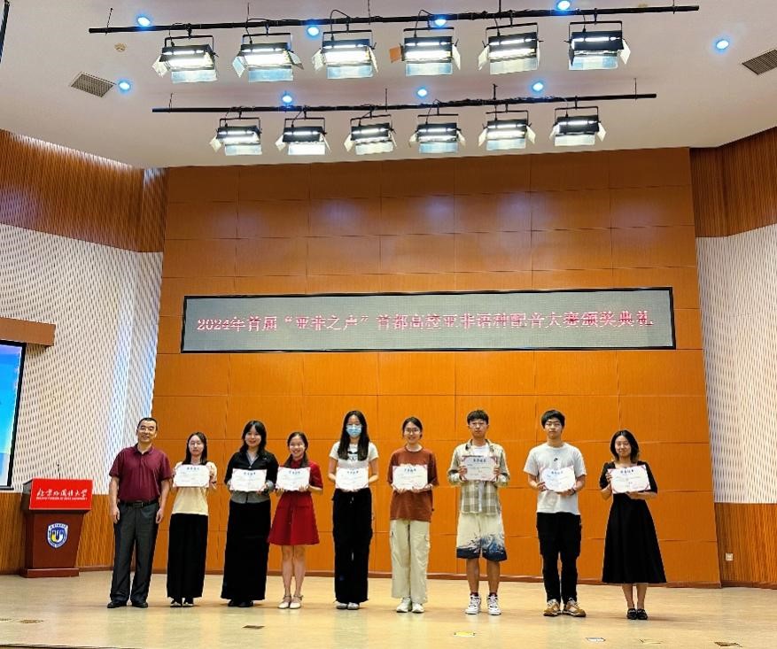 2024年5月19日,“首届‘亚非之声’首都高校亚非语种配音大赛”颁奖典礼在太阳集团122cc东校区阿语楼国会厅隆重举行。此次大赛共涵盖23个语种,共有88支队伍参赛。经过专业评审团和综合评审团的评审,来自太阳集团122cc祖鲁语专业的两支队伍“声临其境大师队”和“碱基互补配队”分别荣获大赛一等奖和“最佳幽默奖”。